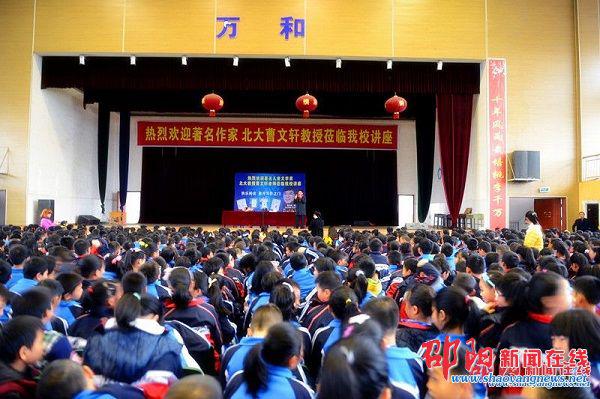 邵陽(yáng)新聞在線訊(通訊員 劉建華)11月18日,北京大學(xué)教授曹文軒蒞臨隆回縣萬(wàn)和實(shí)驗(yàn)學(xué)校講學(xué)。曹文軒是我國(guó)當(dāng)代著名作家,精擅兒童文學(xué),任北京作家協(xié)會(huì)副主席,北京大學(xué)教授、現(xiàn)當(dāng)代文學(xué)博士生導(dǎo)師、當(dāng)代文學(xué)教研室主任,兒童文學(xué)委員會(huì)委員,中國(guó)作家協(xié)會(huì)魯迅文學(xué)院客座教授,是中國(guó)少年寫(xiě)作的積極倡導(dǎo)者、推動(dòng)者。
