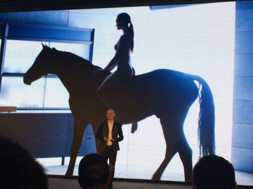 1月18日,這個霸屏已久吊足胃口的“裸女”終于正式在博洛尼以“偏見空間”為主題的2016年品牌發(fā)布會上正式亮相,蔡明騎著一匹俊俏公馬,與裸女各種姿勢對視,眉目傳情,火花直撒射到屏幕之外,荷爾蒙澎湃涌出。