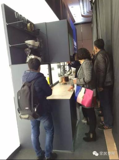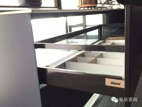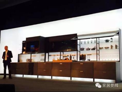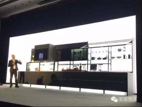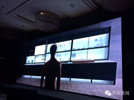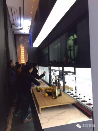 整個櫥柜完全是鋁合金結(jié)構(gòu)和玻璃,沒有一塊刨花板,完全環(huán)保,每個屏幕都是可互動、可觸摸的。左上角屏幕既是電視又是觸摸屏,可以跟手機聯(lián)動,屏和屏之間都可以互動。