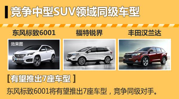 目前在東風(fēng)標(biāo)致的SUV產(chǎn)品陣容中,緊湊級(jí)SUV 3008是其級(jí)別最高的車型,東風(fēng)標(biāo)致沒有產(chǎn)品涉及中型SUV細(xì)分市場(chǎng)。隨著東風(fēng)標(biāo)致中型SUV“6001”的推出,東風(fēng)標(biāo)致將首次進(jìn)入中型SUV領(lǐng)域。在這一細(xì)分市場(chǎng)中,同級(jí)別熱門車型有福特銳界、豐田漢蘭達(dá)等,未來東風(fēng)標(biāo)致6001的加入將使這一細(xì)分市場(chǎng)競爭更加激烈。值得一提的是,福特銳界、豐田漢蘭達(dá)均采用了7座布局,未來東風(fēng)標(biāo)致6001也將有望推出7座車型競爭同級(jí)對(duì)手。