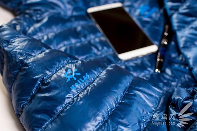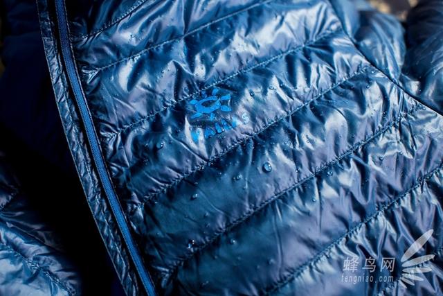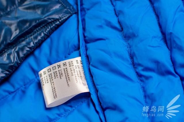 這款凱樂石羽絨服的面料和里料都采用了100%錦綸,也許大家不了解錦綸是什么專業(yè)材料,我也是百度百科了一下才知道錦綸具備纖維超細、舒適、柔軟且阻燃的特性,所以在這款羽絨服的標(biāo)牌的品名上最后還注明了“輕焰”。另外作為一款戶外服裝,這款羽絨服的面料也是防水、防漏絨的。雖然我拿到衣服的這幾天北京剛剛下過雨雪,我沒能真正體驗雨水打在衣服上的感覺,但我還是特意淋了一些水在羽絨服上,水淋在羽絨服面料上都凝聚成了水珠完全不能滲透進里料,之后用干布輕輕擦拭衣服面料立刻還原如初了。