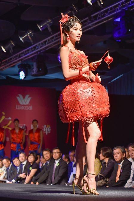 華歌爾「經(jīng)典時尚秀」將肚兜與當今的剪紙工藝、3D列印、LED結(jié)合呈現(xiàn),古今的融合,撞擊出華歌爾的設(shè)計力(圖片來源:奧美公關(guān))