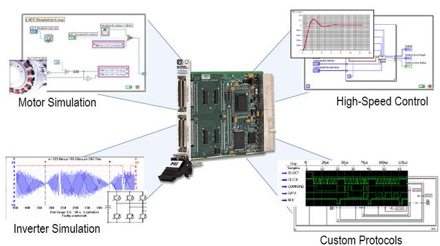 基于第二章所述的MCU測(cè)試的技術(shù)難點(diǎn),恒潤(rùn)科技提供了基于高性能FPGA的電機(jī)實(shí)時(shí)仿真方案。NI 的高性能FPGA板卡PXI 7966R滿(mǎn)足電機(jī)實(shí)時(shí)仿真的所有特性需求,包括:
