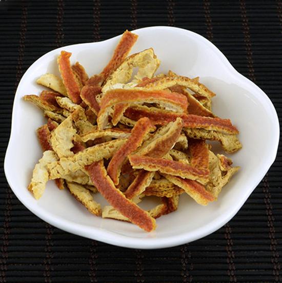 陳皮是廣東三寶之一,其最出名的要數(shù)新會陳皮。陳皮是個百搭高手,它的經(jīng)典搭配有:1.陳皮+山楂+貢菊+烏梅+薄荷葉+合歡花+洛神花+金蓮花=開胃順氣、清熱解毒;2.陳皮+枸杞+千日紅+洋甘菊+貢菊+決明子+苦瓜=理氣健脾、明目潤肺;3.陳皮+馬鞭草+檸檬草+荷葉+冬瓜皮+桂花+甘草+平陰玫瑰 +金銀花=瘦腿消水腫;4.陳皮+檸檬片+桃花+蘆薈+荷葉+冬瓜皮+決明子+甘草+胎菊=潤腸通便;5.陳皮+金銀花+金蓮花+貢菊+薄荷葉+甘草+胎菊=潤喉潤肺、適合吸煙者;6.陳皮+普洱熟茶=健脾和胃;等等。