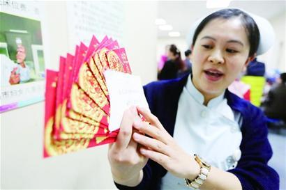 除夕夜,晚7點50分,在市婦女兒童醫(yī)院急診科兒童收藥間,值班護士像往常一樣忙碌著。一位女患者在窗口前徘徊了5分鐘,突然塞進來10個寫滿字的紅包,隨后匆匆離去。正在埋頭收藥的護士竇琛發(fā)現(xiàn)后,連忙沖出去尋找女患者,但沒有找到。