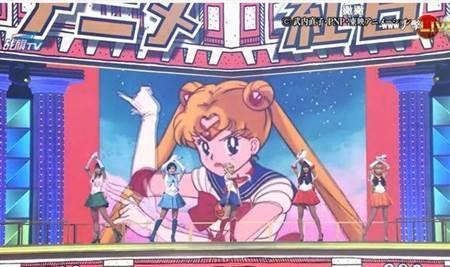 AKB48派出渡邊麻友等五為人氣成員,扮成《美少女戰(zhàn)士》中的五位主角。搞笑樂團(tuán)「金爆」則是Cosplay成《神奇寶貝》里的小智、火箭隊(duì)等人物,令人發(fā)噱。E-girls也與MIWA合唱《櫻桃小丸子》的主題曲,眾藝人在《妖怪手表》的吉胖喵、小石獅人偶包圍下,熱鬧合唱經(jīng)典曲目。