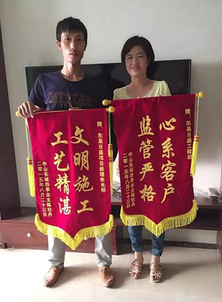 東易日盛強勢入駐東莞兩年以來,經歷風雨,收獲頗豐,在業(yè)績滿滿之外,更是連續(xù)兩年收獲了搜房網(wǎng)的年度受業(yè)主喜愛的裝飾品牌的獎項。在2015年里,東易日盛收到很多客戶的錦旗,讓他們倍感驕傲的同時,也激勵著他們?yōu)榭蛻籼峁└觾?yōu)質的服務!