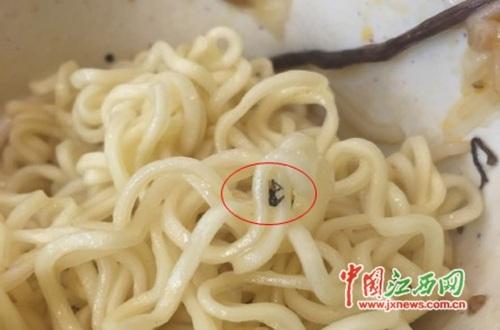 反映:吃火鍋時發(fā)現(xiàn)方便面上有一只黑蟲