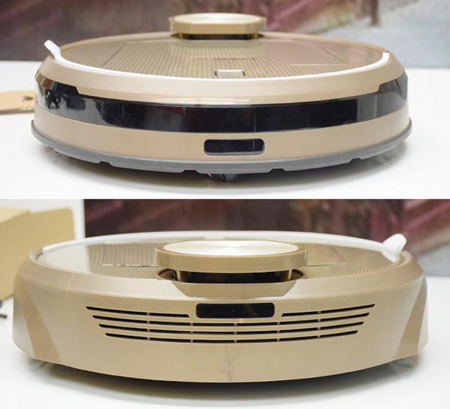 科沃斯DR95的規(guī)格為354*354*98mm,產(chǎn)品凈重3.4KG,厚重感十足。機(jī)身整體采用流光金為主色調(diào),高貴之余不落俗。需要注意的是,剛拆的機(jī)器表面有層防刮膜,需要去除。