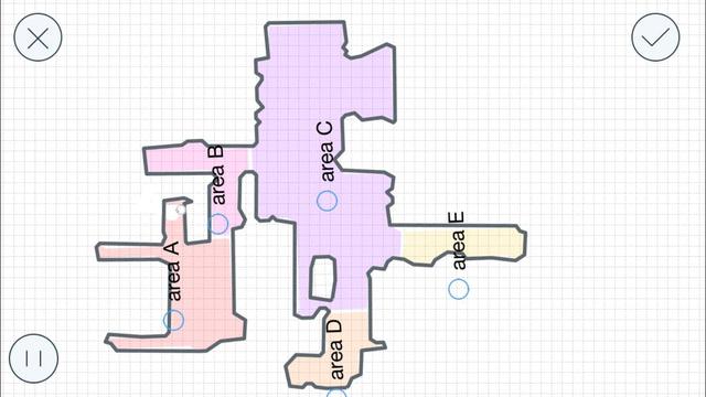 點擊操作頁面的“地圖”,用戶就可以查看到DR95的清掃地圖。點擊智能分區(qū)域按鈕,繪制出的地圖直接以房間為單位分成A、B、C、D等區(qū)域。