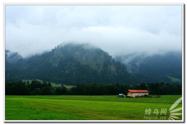 阿爾卑斯云霧繚繞,草地上的小紅房格外醒目,感覺(jué)景色不錯(cuò),立馬停車“咔嚓”幾張。