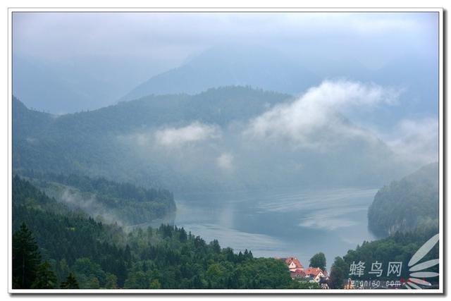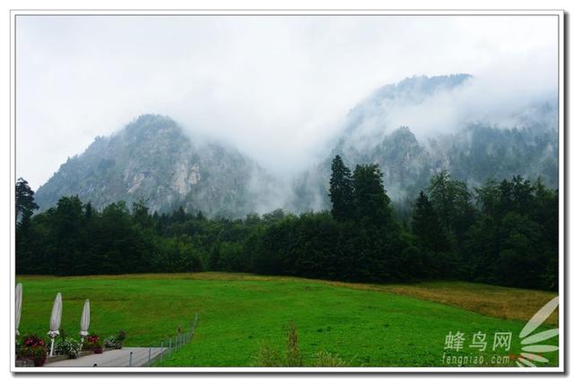 兩個(gè)古城堡之間是阿爾卑斯山脈中的一個(gè)湖,雨霧天湖景少了幾分秀麗,則多了幾分靈動(dòng)。