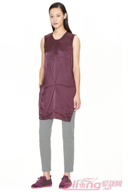 2016春季新款江南布衣禮服式連衣裙,采用素緞面料,懸垂感強,可塑性強,穿著有親膚感,側(cè)邊的抽褶展現(xiàn)出女性的曼妙腰部曲線。