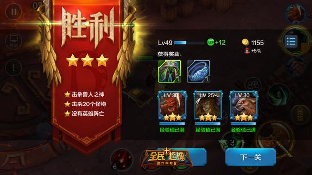 通過條件:擊殺獸人之神、擊殺20個(gè)怪物、沒有英雄陣亡