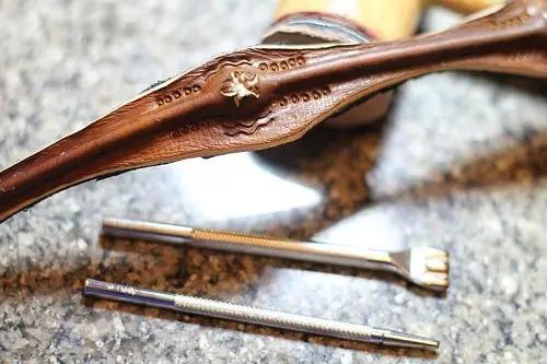 光是弄圖案就已經(jīng)要好幾個(gè)小時(shí),而我們已經(jīng)沒(méi)有足夠的制作小袋子,要改為制作皮革手鐲。雖然有點(diǎn)失望,但我們也明白設(shè)計(jì)和制作圖案是皮革制作的基礎(chǔ),它對(duì)于皮革制作是十分重要的。