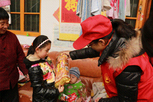 得知王大娘一家的不幸遭遇后,由多年不孕、經(jīng)紅房子醫(yī)院治療成功懷孕生子的幸孕媽媽組成的玫瑰義工團(tuán)成員們坐不住了,2015年12月25日,幸孕媽媽王淑華一行人來到康驛鎮(zhèn)蔣街村,在該村村主任肖丙民的陪同下,帶著大米、食用油來到了王大娘家開展幫扶活動(dòng)。
