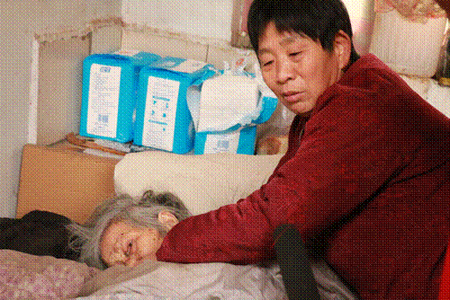 因?yàn)槔夏耆嗽诖采蟿?dòng)都動(dòng)不了,王大娘每天給她翻身都要費(fèi)很大勁