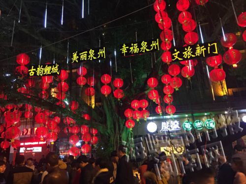 作為新城主展區(qū),豐澤區(qū)城東街道的中駿世界城展區(qū)顯得更現(xiàn)代一些,頗具閩南傳統(tǒng)特色的花燈往繁華的步行街一掛,頓時(shí)有了別樣風(fēng)景。