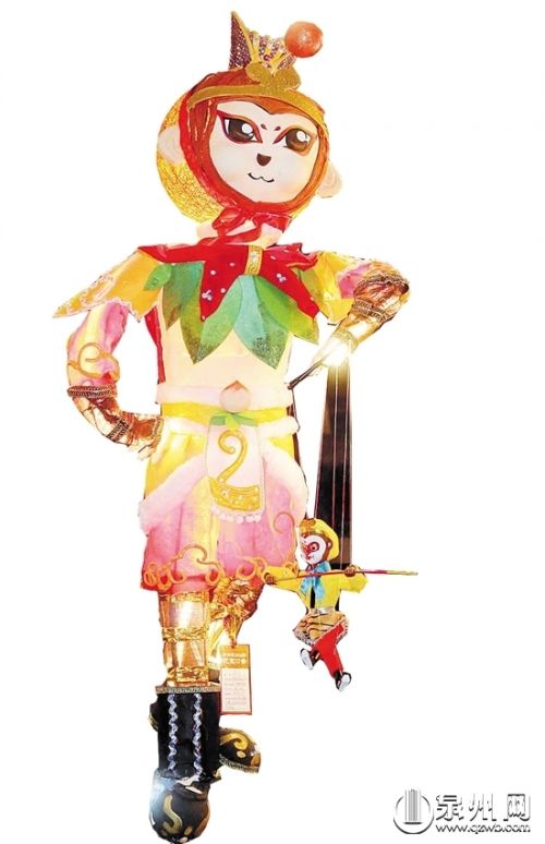 世界城花燈展區(qū),孫大圣玩著提線木偶鬧元宵。(莊麗祥 攝)