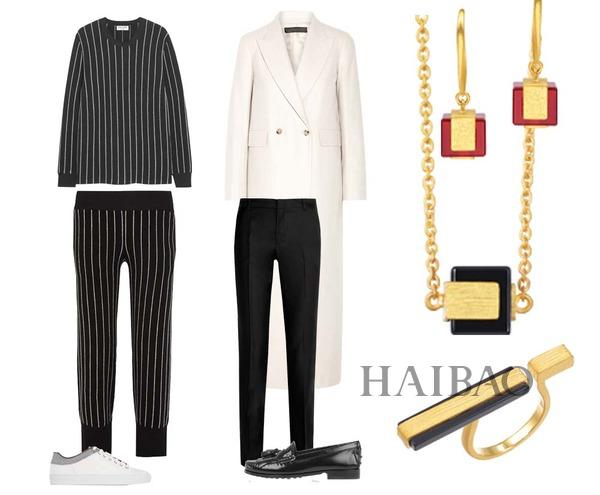 用平底鞋代替高跟鞋,找閨蜜去逛街。白色休閑鞋搭配條紋套裝、平底洛克鞋搭配西裝褲與超長白色大衣,自在隨性又型格滿滿,同系列珠寶是閨蜜穿搭的點睛之筆。周生生 (Chow Sang Sang) G系列金色配紅或配黑的幾何造型,不隨波逐流,自有我的態(tài)度,打造時髦又顯眼的出街Look!