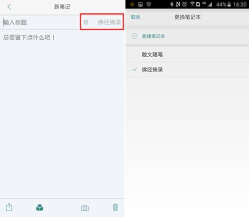 點(diǎn)擊筆記本名稱,可以更換筆記本,也可以新建筆記本