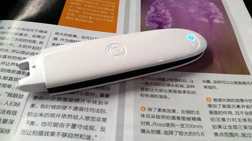 打開藍(lán)牙速錄筆的保護(hù)蓋,可以看到它的掃描識別區(qū)域。白色突出的部位為掃描觸發(fā)開關(guān),按下時燈亮,自動觸發(fā)光學(xué)感應(yīng)器以獲取圖像;疑〖^則指示了掃描的位置——我們在掃描時,要將該箭頭對準(zhǔn)待掃描的文字行。