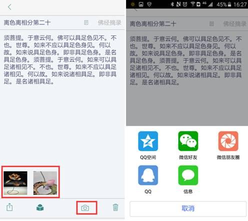在頁面底端有四個選項,從左至右依次為分享、校對、添加圖片和刪除筆記。選中校對選項后,掃描到的信息可以通過圖片對照的方式顯示在灰色條框中,以便及時校對錄入內(nèi)容。