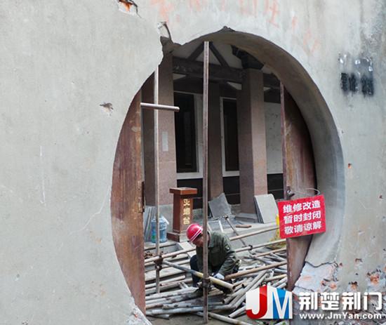 荊楚荊門網(wǎng)訊(羅蒙 孫紅梅)11月26日,作為荊門歷史上的“三臺八景”之一,有“荊楚歷史文化內(nèi)涵展示窗口”之稱的老萊子山莊正式啟動一期改建項(xiàng)目。只見老萊子山莊正、配殿外裝有許多腳手架,一位工人正在用工具撬起正殿門口原有的地磚,正殿內(nèi)除原有的浮雕畫像及老萊子生平簡介外,裝飾品已基本搬離,地面上堆放著許多建筑材料。正殿后,幾名工人正在認(rèn)真的安裝腳手架,拱門外掛著“維修改造,暫時封閉,敬請諒解”的告示牌。