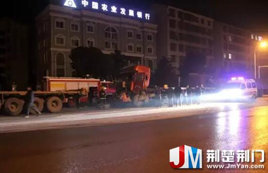 荊楚荊門網(wǎng)訊(羅蒙 胡騰羽)1月18日0時(shí)左右,荊門市沙洋縣洪嶺大道南勝鑫大酒店門口發(fā)生一起交通事故,造成3輛大掛車連環(huán)追尾,當(dāng)?shù)毓病⑾馈⑨t(yī)療等部門迅速趕赴現(xiàn)場(chǎng)。