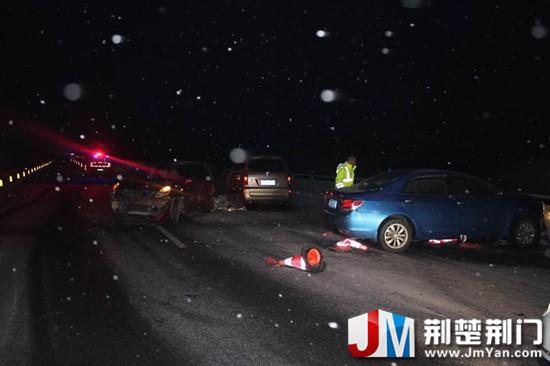 21日凌晨6時(shí)許,隨岳高速公路京山段156公里橋面發(fā)生多車相撞的交通事故。早晨6點(diǎn)04分,湖北省高警京山大隊(duì)值班室接到一起交通事故報(bào)警,司機(jī)稱在湖南往隨州方向發(fā)生事故,具體公里數(shù)不明。就在值班民警與司機(jī)通話過程中,又聽了到一聲猛烈的撞擊聲,司機(jī)驚恐未定,趕緊說了句“你們快來”,便掛斷了電話。民警立即通知了路面巡邏民警,安排民警沿著司機(jī)描述的方向巡邏查找。值班民警再次回?fù)芰穗娫挘笇?dǎo)報(bào)警司機(jī)查看具體公里牌,并要求報(bào)警司機(jī)通知所有人員下車,撤離至橋頭高速公路護(hù)欄外。因?yàn)檠┨煸诟咚俟窐蛎娣浅NkU(xiǎn),一旦后方來車打滑剎車,很可能撞到現(xiàn)場(chǎng)的人員。就在民警趕往事故現(xiàn)場(chǎng)的過程中,高警大隊(duì)值班室又接到了幾位司機(jī)報(bào)警,稱在同一位置橋面發(fā)生了事故,有幾名乘客居然怕冷坐在車內(nèi)不想出來,還有一人在下車查看自己行李和物品時(shí)被撞傷,幸好只是輕微皮外傷。幾分鐘時(shí)間,處置民警到達(dá)事故現(xiàn)場(chǎng),經(jīng)過現(xiàn)場(chǎng)查勘,共有8輛車在橋面發(fā)生事故,均因車速過快,上橋面前未提前降低車速,部分司機(jī)上橋發(fā)現(xiàn)車輛打滑后,還踩了急剎車,導(dǎo)致車輛加速偏離方向發(fā)生交通事故。