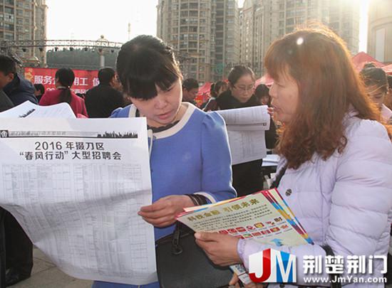 荊楚荊門網(wǎng)訊(羅蒙 袁恬)2月17日,荊門市掇刀區(qū)星球商業(yè)中心廣場上人潮涌動(dòng)、熱鬧非凡。由荊門高新區(qū)管委會(huì)·掇刀區(qū)人民政府主辦,掇刀區(qū)人力資源和社會(huì)保障局承辦的“服務(wù)企業(yè)用工·促進(jìn)就業(yè)創(chuàng)業(yè)”2016年“春風(fēng)行動(dòng)”大型招聘會(huì)在這里舉行。本次招聘會(huì)吸引近3萬名求職者參加,達(dá)成意向2876人。