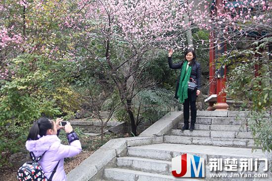 圖為:嬌艷的梅花引來無數(shù)游客觀賞拍照