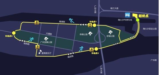本次比賽采取熒光夜跑的形式,參賽選手從海心沙亞運(yùn)公園出發(fā),途經(jīng)宏城公園、傳祺公園、廣州發(fā)展公園、星海音樂(lè)廳,再返回至出發(fā)點(diǎn),全長(zhǎng)5公里。縱觀整個(gè)賽道,環(huán)境優(yōu)美,貫穿園林,與小蠻腰隔江而望,是一條絕佳的夜跑路線。