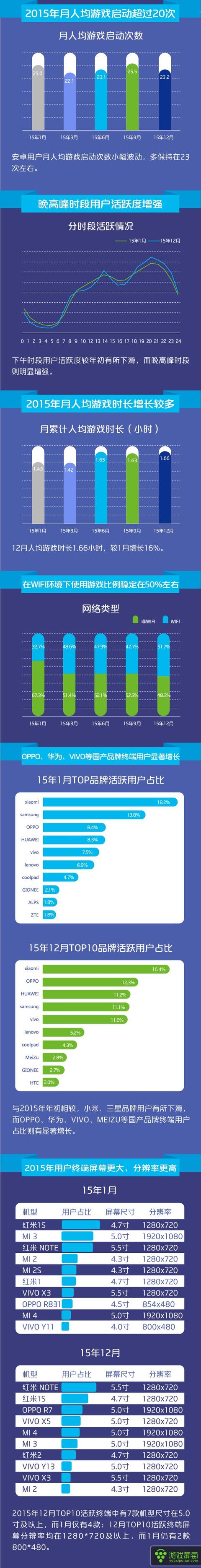 報告中指出,安卓游戲用戶較年初增長56%,在各省均有較大發(fā)展。此外12月人均游戲時長1.66小時,較1月增長16%。