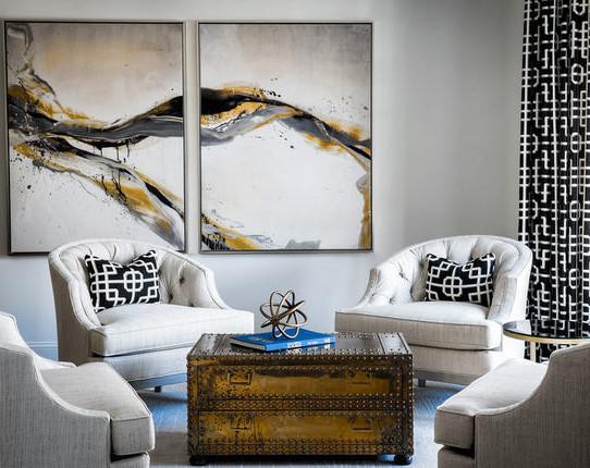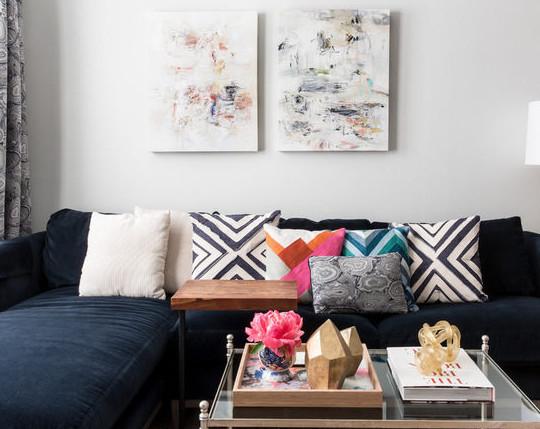 首先映入眼簾的便是兩幅斷而相連的掛畫,給生活空間帶來優雅的藝術氣息,與古樸的鐵藝皮箱相呼應,小小的空間格調十足。