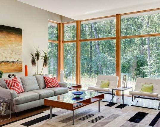 客廳雖然不大,大面積的玻璃窗讓小客廳也有了大戶型視覺,窗外的綠景成蔭成了客廳最美的背景墻,室內幾株植物與室外遙相呼應,趣味無限。