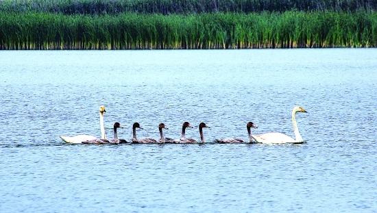 近年,三門峽生態(tài)環(huán)境越來越好,成為全國最大的白天鵝越冬棲息地。今年6月,因傷留守在三門峽的兩只白天鵝,在三門峽天鵝湖國家城市濕地公園“生兒育女”,成功孵化出6只小天鵝,創(chuàng)造了野生大天鵝首次在黃河流域成功自然繁殖后代的奇跡。作者花費數(shù)月時間,用鏡頭紀(jì)錄了這6只小天鵝的成長足跡。