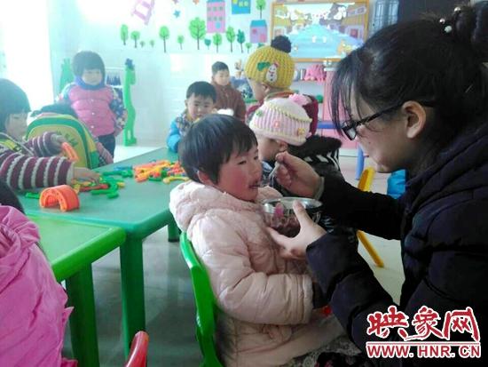 8點05分,校車到達小天鵝幼兒園,張亞軍校長和王丹老師帶著小一班的孩子們來到車旁,歡迎小佳蕊正式加入歡樂的大家庭。8點10分,小佳蕊坐在了小一班教室屬于自己的座位上,開始了幸福快樂的學習生活。唱歌、拼圖、做游戲、玩滑梯,小佳蕊聰明玲琍,性格活潑,半天時間就贏得了老師和同學們的喜歡。班主任王丹老師告訴記者,“在網上看到了孩子家里的不幸,全園老師都想為他們做點事情,正好張校長把佳蕊按排到了小一班,我一定把孩子帶好,讓她也享受到童年的快樂”。中午,王丹老師親自為佳蕊盛好飯,用小勺子一口一口喂著孩子。“飯好吃唄”?“好吃”!“幼兒園好唄?老師同學好唄”?“好,好,比家里好,可高興”!記者問一句,小佳蕊答一句,一臉興奮與幸福。園長張亞軍告訴記者,“校車每天八點之前會把孩子接到幼兒園,中午在園內吃飯,下午5點準時把孩子送到家。這三年的所有費用全免,希望能給這個家庭解決點困難。同時,也希望廣大愛心人士伸出援手,幫助王海龍盡快蘇醒,幫助王海龍的家人重返幸福!”
