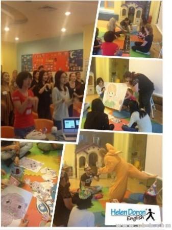 此外,海倫多蘭亞太區(qū)資深教師培訓(xùn)師Ola重點(diǎn)對(duì)海倫多蘭的新課程進(jìn)行了講解,老師們結(jié)合課程內(nèi)容進(jìn)行了現(xiàn)場課堂模擬和觀摩,交流新課程的教學(xué)方法。模擬音樂和舞蹈課堂時(shí),老師們都情不自禁的手舞足蹈;模擬游戲課堂時(shí),老師們紛紛展現(xiàn)了自己的絕活,有的老師把身體模型都拆開,不僅教會(huì)學(xué)生認(rèn)識(shí)body,而且更讓學(xué)生發(fā)揮了自己的創(chuàng)造力和想象力。