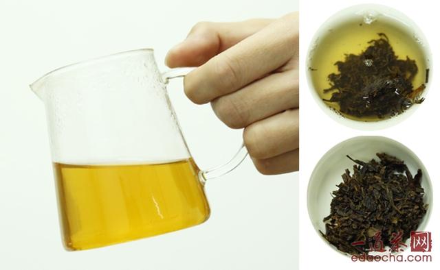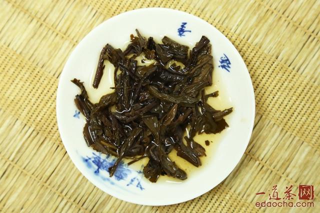 黑茶喝到茶味明顯變淡時可停止沖泡,此時鑒別葉底,最后的葉底呈青褐色,尚油潤,用手輕捏,葉底柔軟有彈性,可見其選料確實不錯。