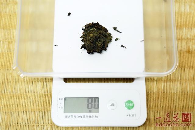 鑒賞完干茶后,我們稱取8g干茶用于評鑒,既能保證茶湯的口感,又能較好地觀賞它的外形,接下來將開始對這款茶的內(nèi)質(zhì)進(jìn)行品評,品評所用的蓋碗容量為110ml。