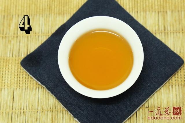 洗茶的茶湯橙黃,略渾,有松煙香,應(yīng)該是采用了傳統(tǒng)松柴明火烘培工藝,不過煙味并不濃郁,也不刺鼻。