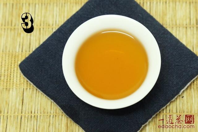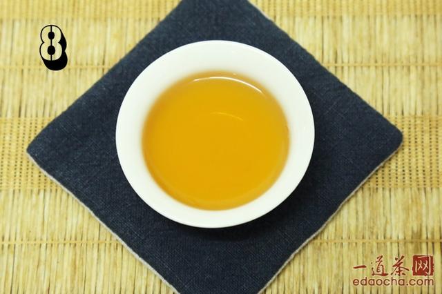 湯色橙黃,茶湯看起來比較渾,能聞到有松煙香,湯質(zhì)稠,入口很滑,在微微的青澀感之中帶著一點清甜,且有明顯回甜。