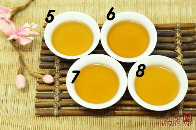 從第6泡茶湯開始,湯色橙黃,滋味醇和,菌花香變淡了很多,卻感覺到湯中有種令人愉悅的甜香。與前幾泡不一樣的是,茶湯入口時味淡,過喉后有微苦,不變的是飲后的回甘和生津均令人回味。