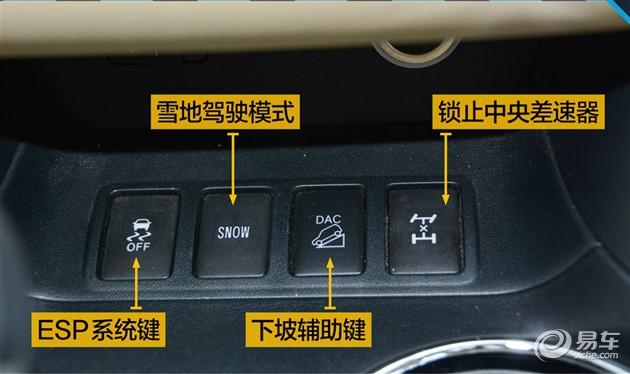 這個(gè)30多度的大下坡剛好能用到的下坡輔助功能。下坡輔助是需要手動(dòng)開啟的,當(dāng)按下下坡輔助鍵后,要掛入手動(dòng)模式的一擋,然后車輛才會(huì)在下坡時(shí),以5km/h的時(shí)速穩(wěn)定下坡。而大家最關(guān)心的中央差速器鎖止鍵,鎖止后可以達(dá)到前后軸50:50的固定扭力分配,當(dāng)時(shí)速超過40km/h后,鎖止功能自動(dòng)取消。
