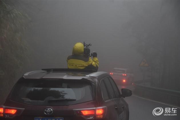 但是越往山上走,霧越大,活脫脫寂靜嶺的感覺有木有?然而拍攝的工作人員還要從天窗探出身體完成拍攝,真是辛苦!