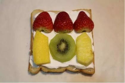 材料:原味白吐司4片、草莓4顆、奇異果1個、菠蘿2片、芒果2片、淡奶油50g