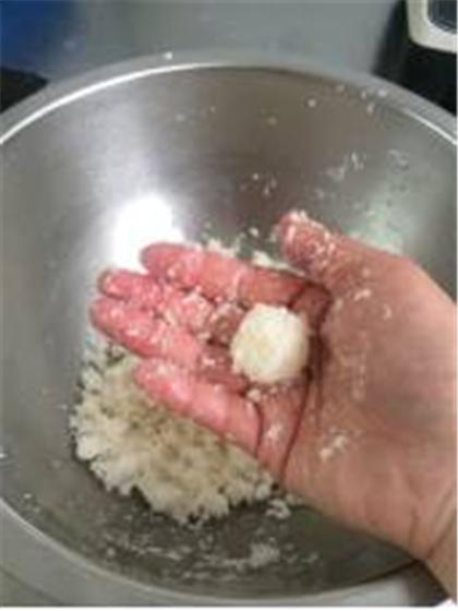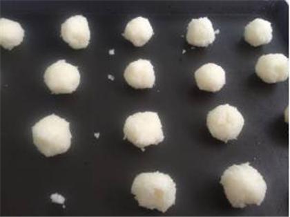 3、把拌好的原料分成8克一個(gè),用手捏成小球,均勻放進(jìn)烤盤
