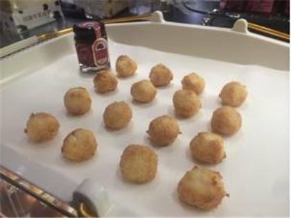 5、等椰子球烤成金黃色,里面的水分烘干,就可以了