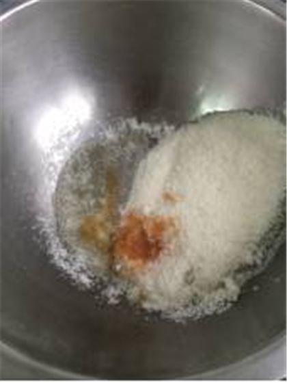 配方:椰蓉100克、細(xì)砂糖60克、蛋白40克、蘋果泥10克
